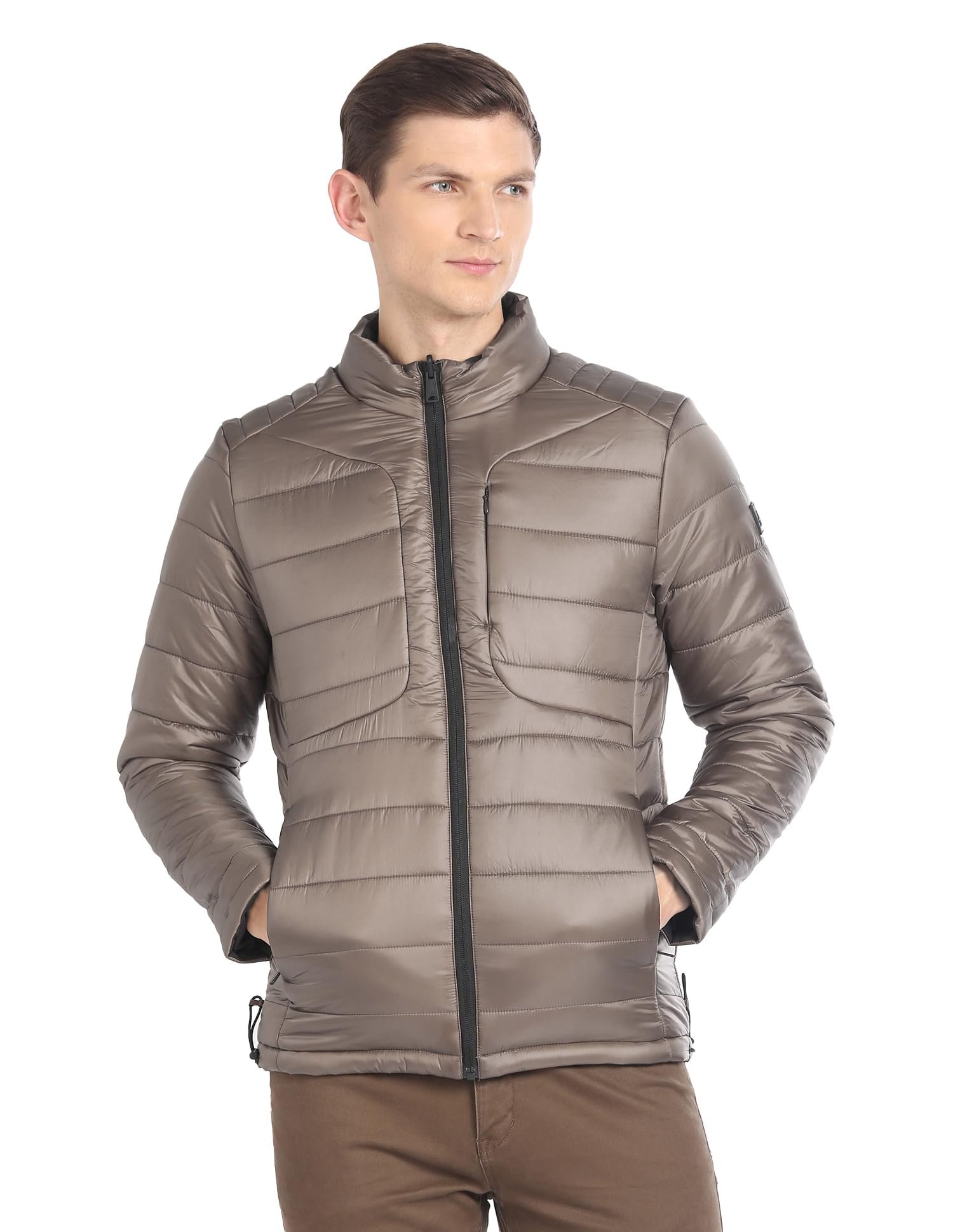Arrow Men’s Polyester Regular Jacket (ASAGJK4769_Brown and Olive, Medium
