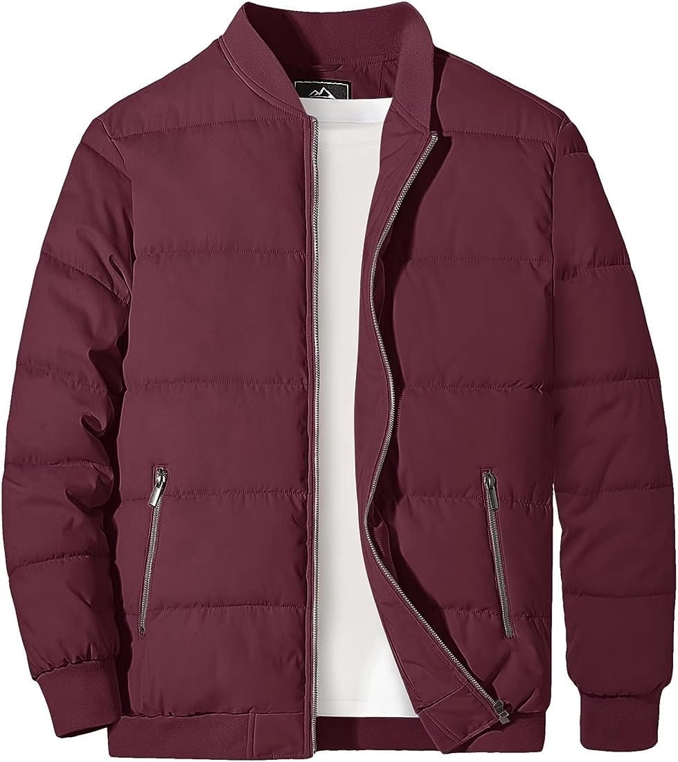 Blaq Ash Stylish Men’s Bomber Puffer Jacket – Warm Winter Coat for Trendy Fashion (Extra Large, Maroon 1)