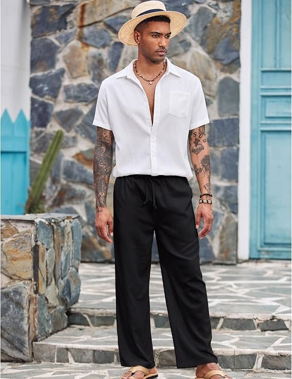 - Premium Linen Fabric — Men’s casual linen pants are made of soft and breathable linen material, which can provide a dry and cool feeling in the hot summer.