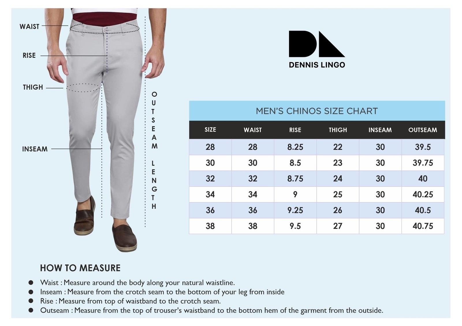 - Material: The Dennis Lingo solid cotton casual trousers are crafted with 98% Cotton and 2% Lycra. This fabric is suited to craft the perfect comfort-oriented lightweight chinos. The material used is versatile, light, durable, and low maintenance.