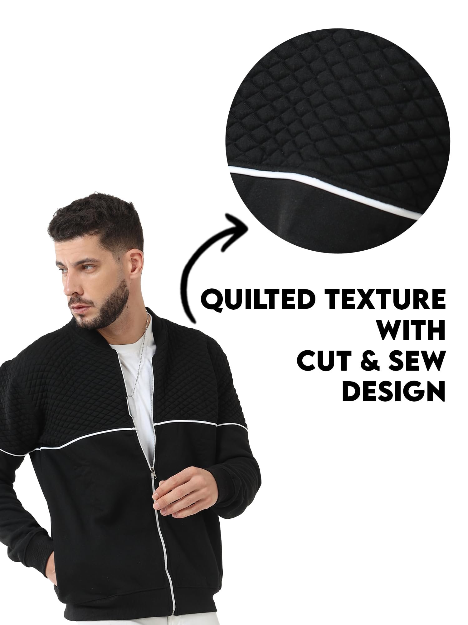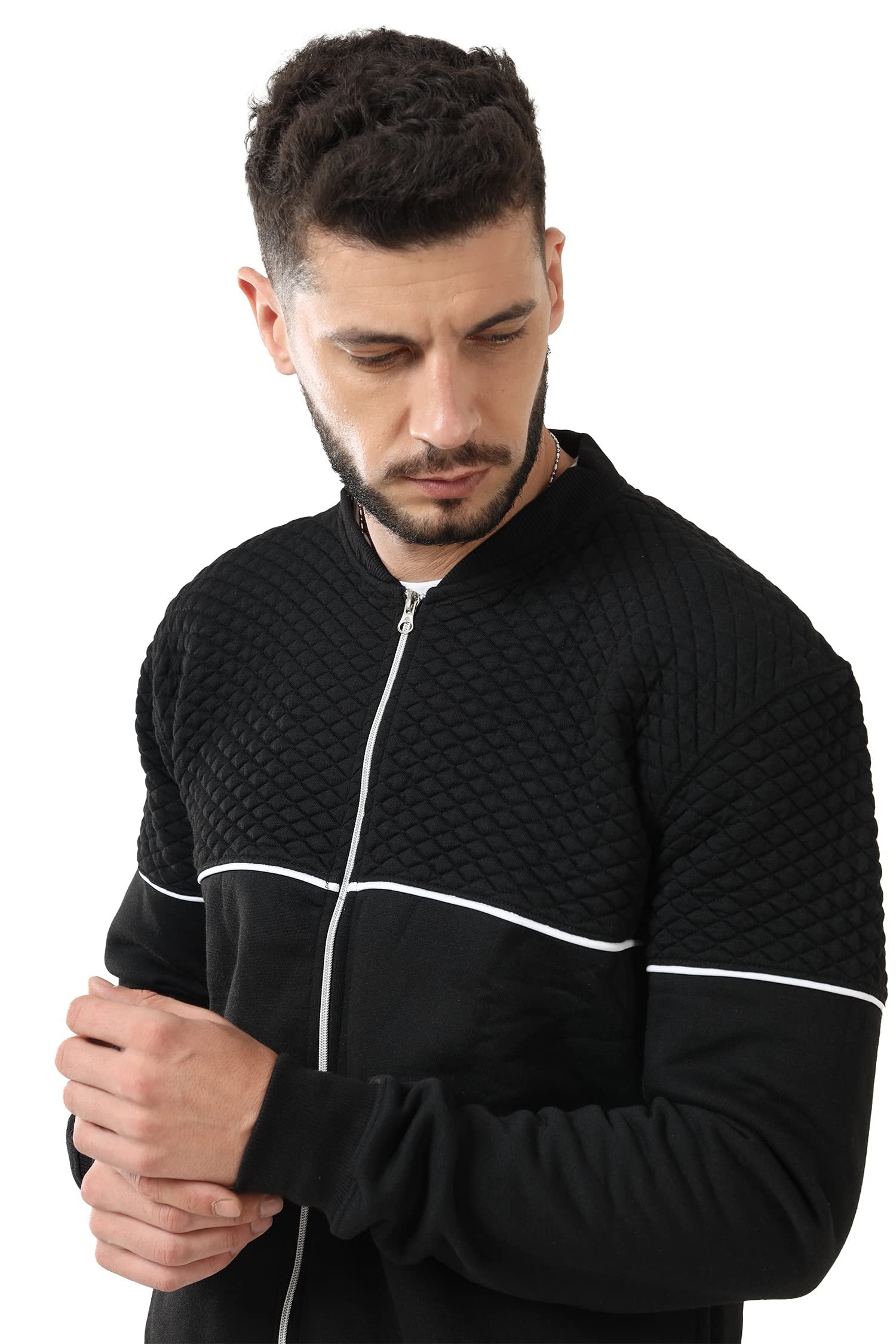 fanideaz Cotton Branded Full Sleeve Diamond Cut Standard Length Bomber Jacket Neck Zipper Hoodies For Men_B_2_X-Large, Black