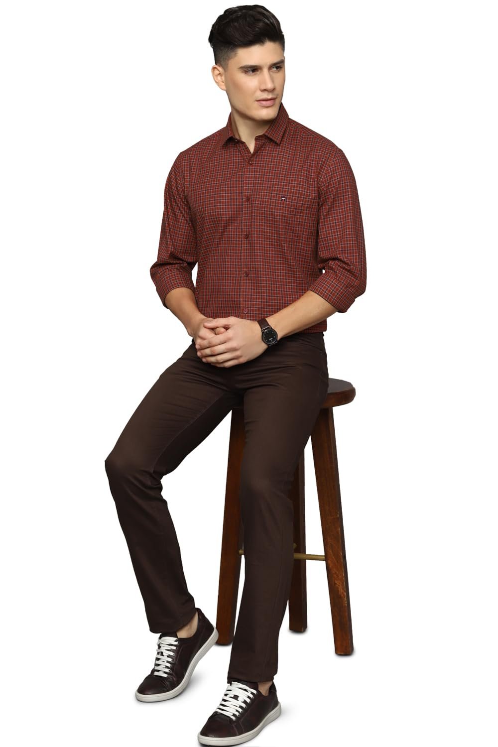 Louis Philippe Cotton Men’s Slim Fit Shirt (LYSFCSLBJ13729_Maroon, 40
