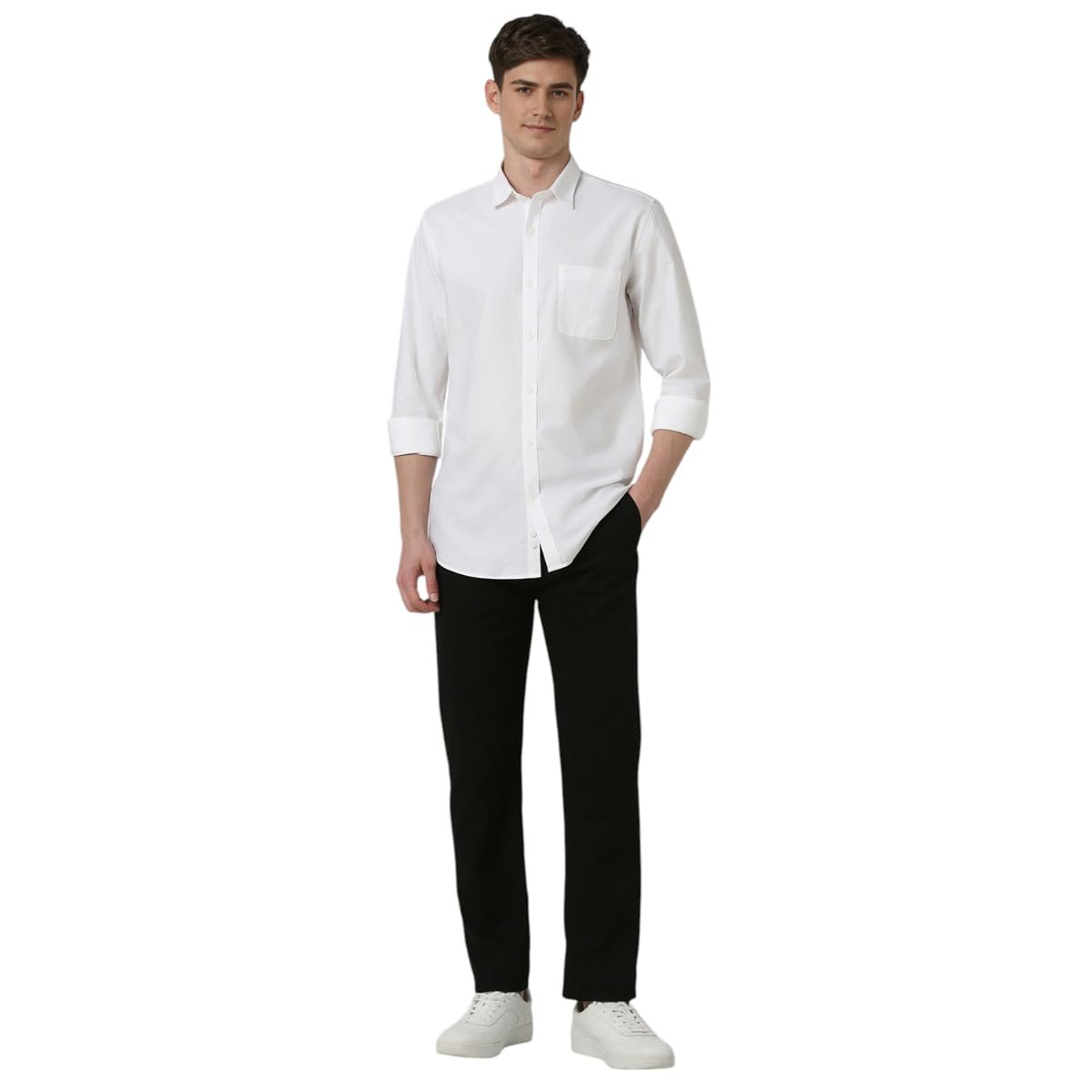 Elevate your style with the Peter England Solid Branded Insignia Casual Shirt, crafted from 100% premium cotton in a classic Oxford weave for superior comfort and sophistication. Designed with a curved pocket, full sleeves, and a refined slim-fit silhouette, this shirt perfectly balances timeless elegance and modern appeal. Ideal for any occasion, it ensures a sharp, versatile look that keeps you effortlessly well-dressed