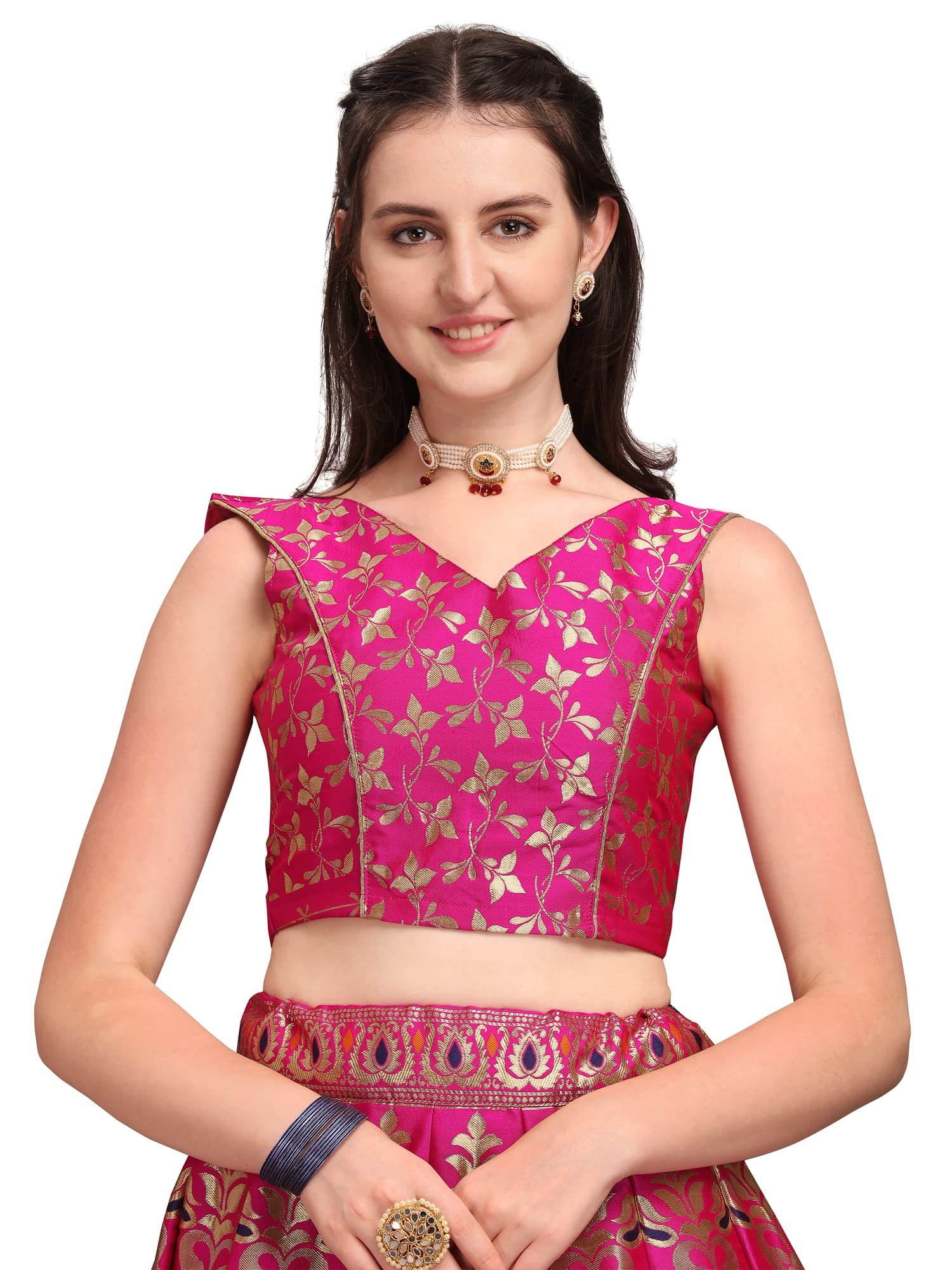 PURVAJA Women's Jacquard Semi-Stitched Lehenga choli (Amayra-Pink_Pink_Free Size)