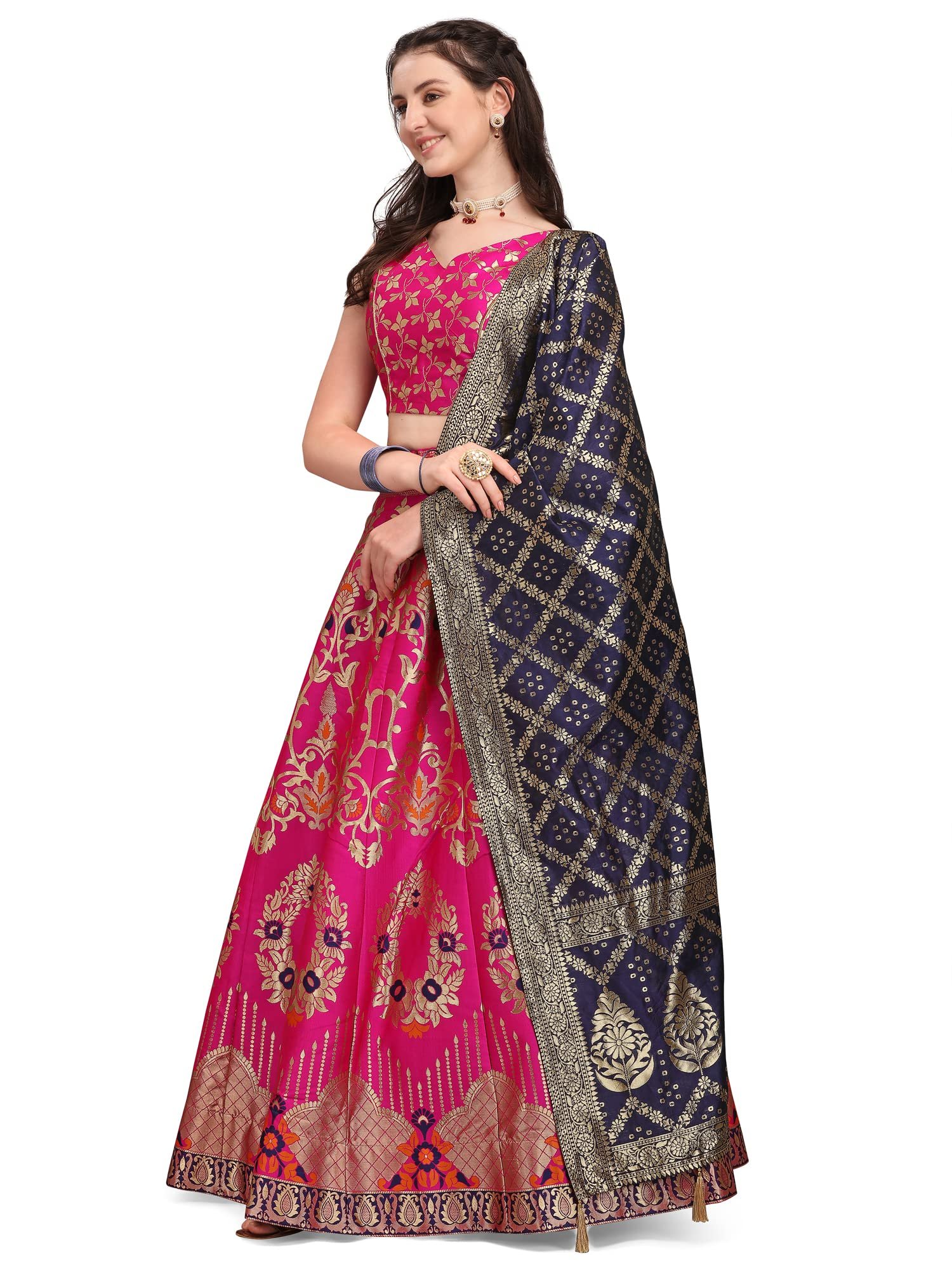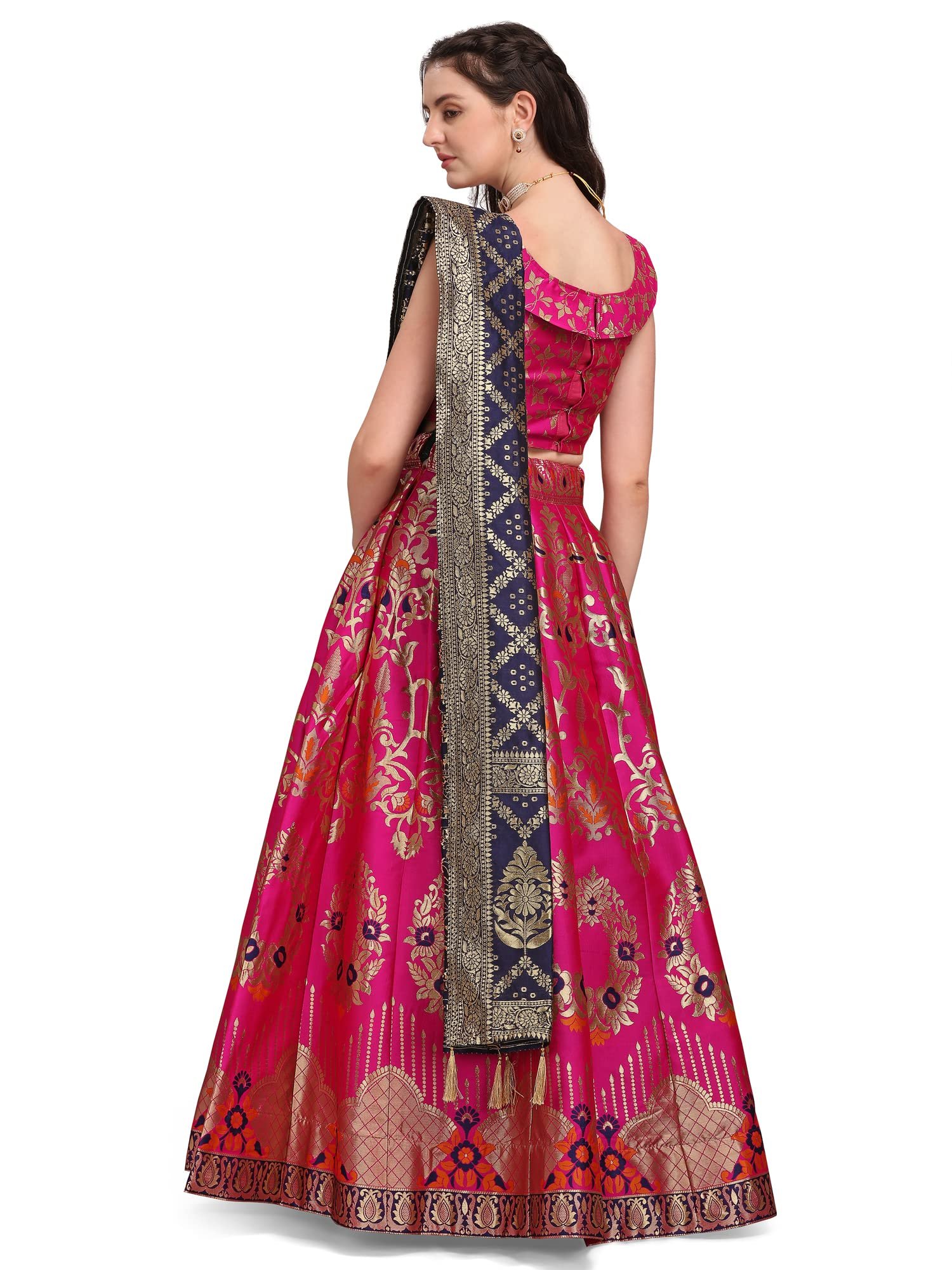 PURVAJA Women’s Jacquard Semi-Stitched Lehenga choli (Amayra-Pink_Pink_Free Size)