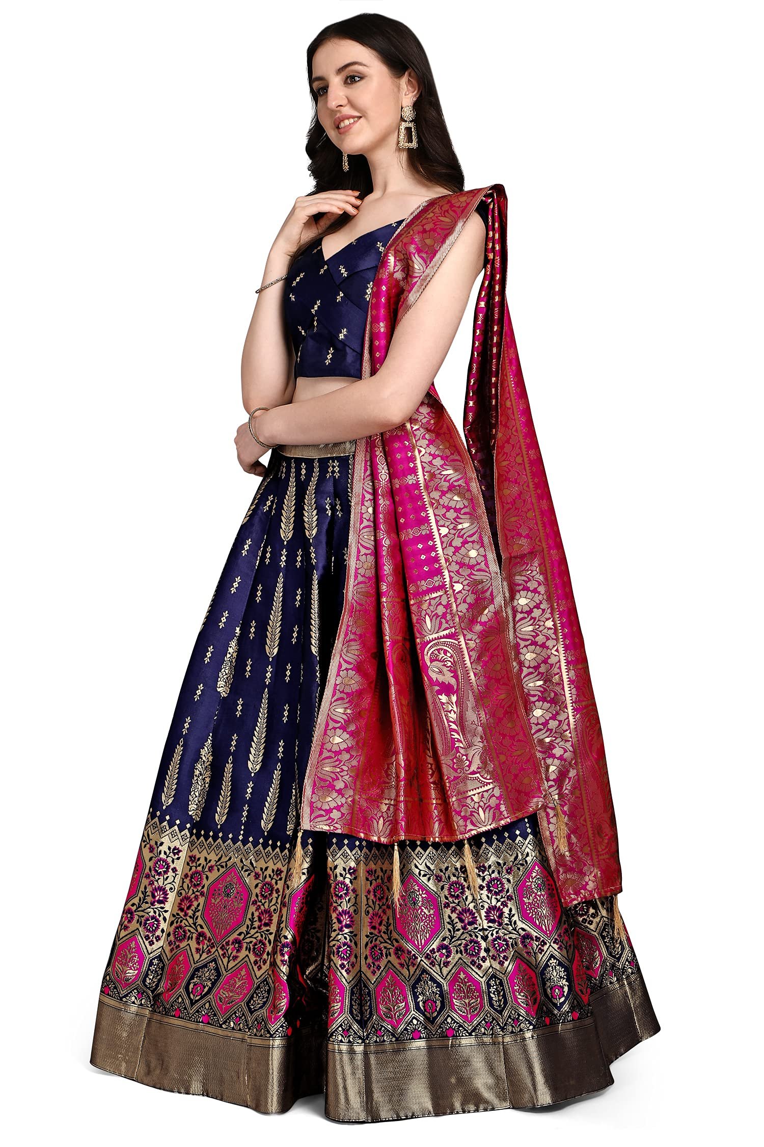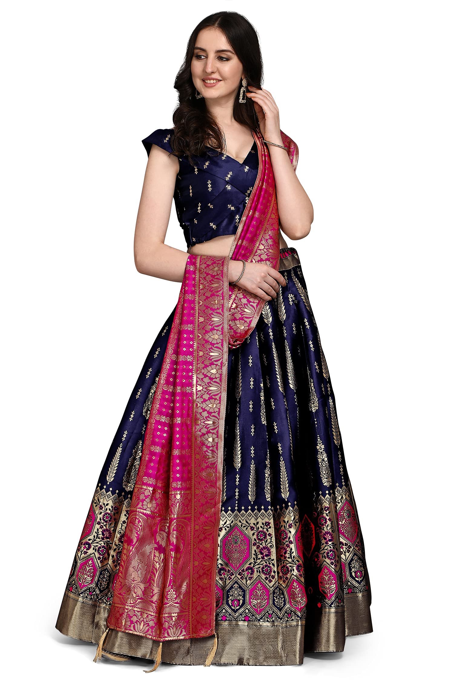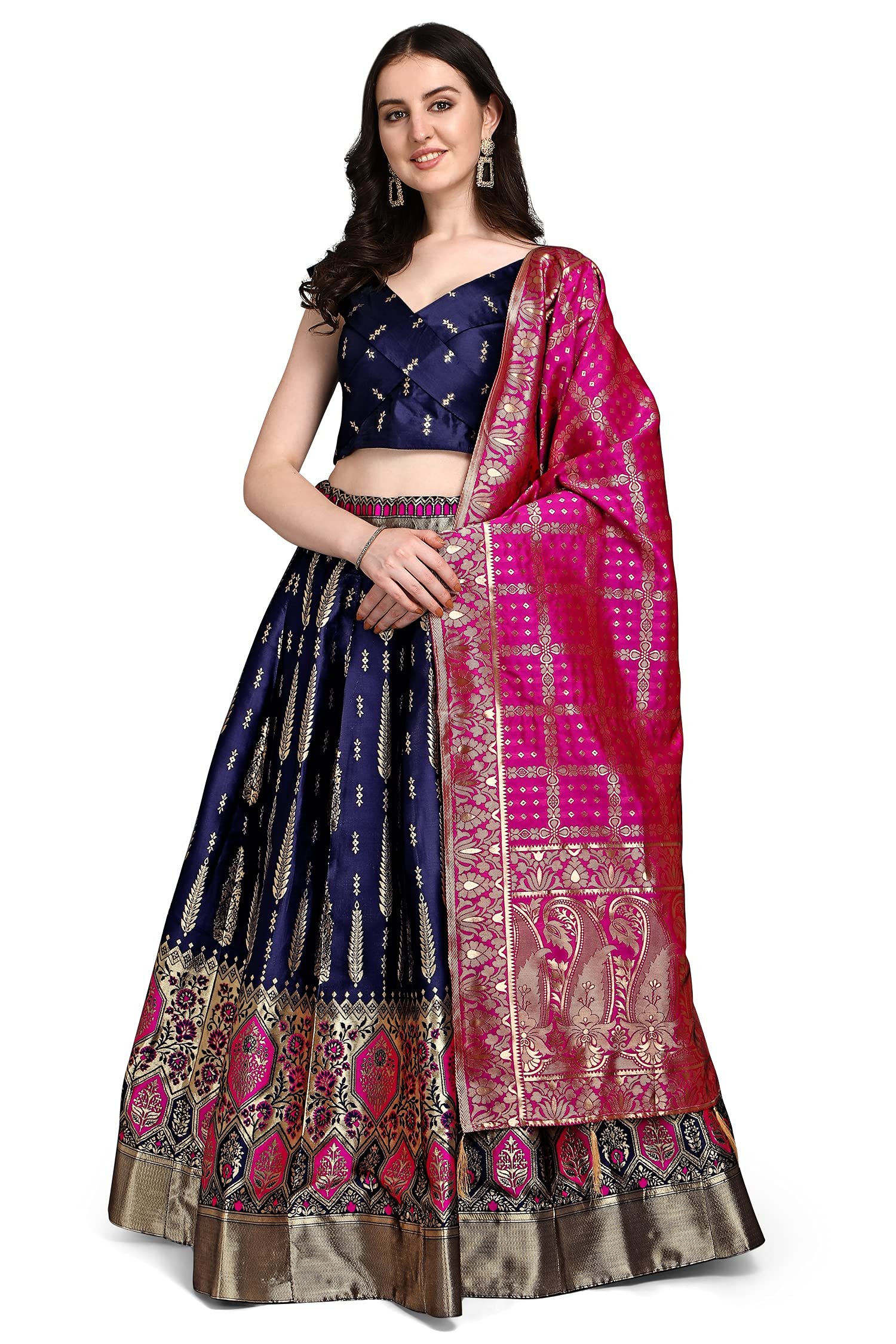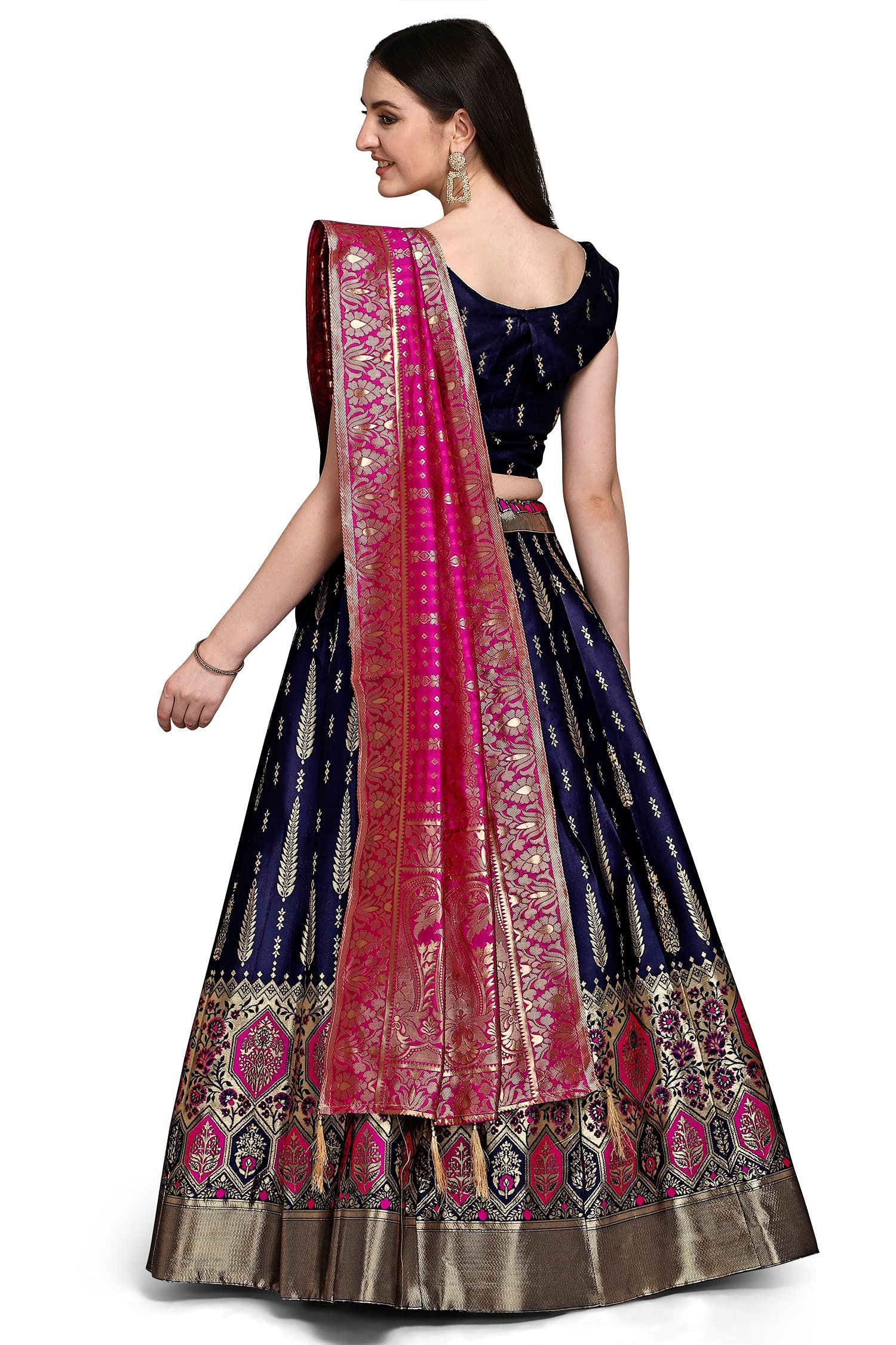 PURVAJA Women’s Jacquard Semi-Stitched Lehenga choli (Swastik-Navy-Blue_Navy-Blue_Free Size)