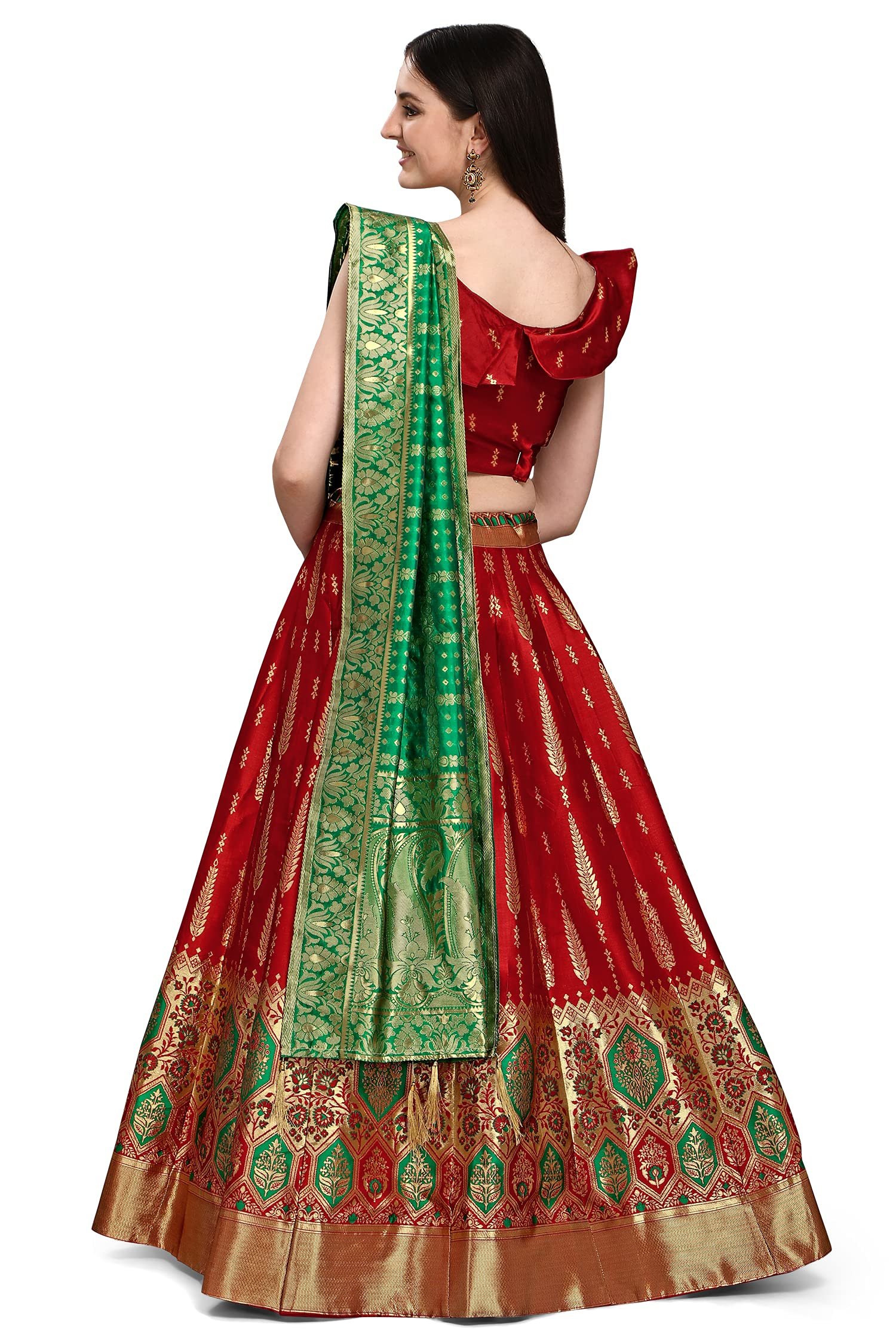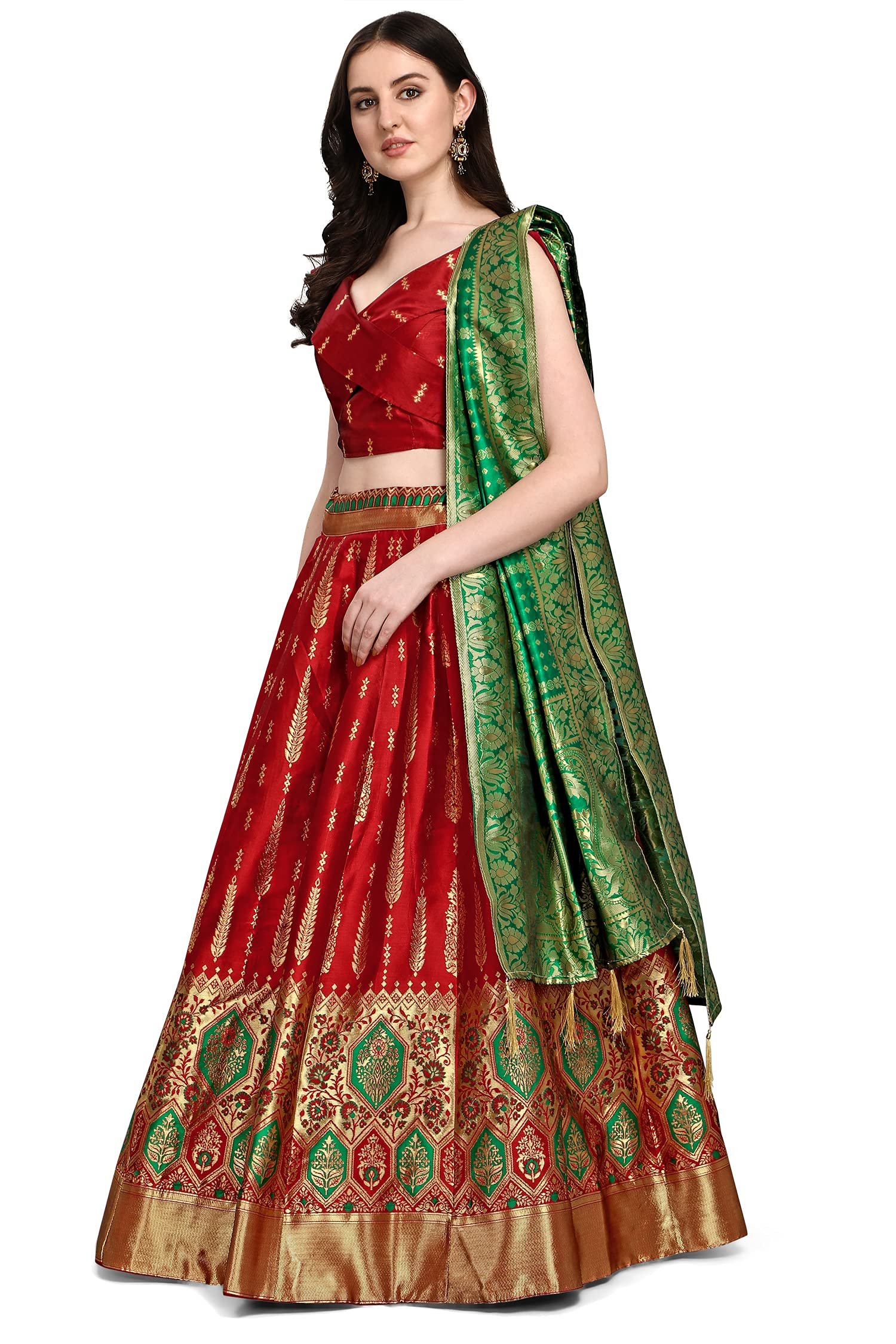 PURVAJA Women's Jacquard Semi-Stitched Lehenga choli (Swastik-Red_Red_Free Size)