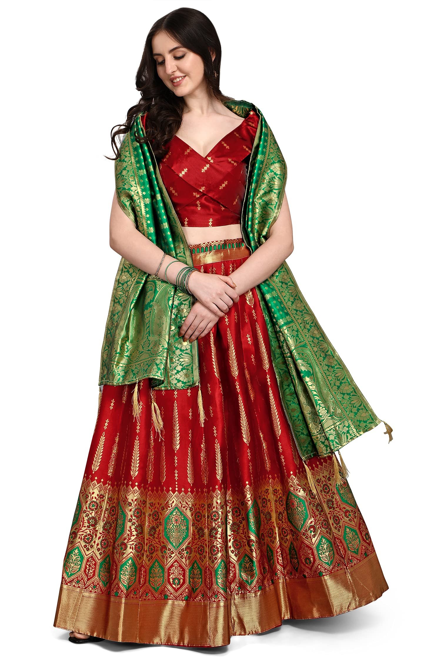PURVAJA Women’s Jacquard Semi-Stitched Lehenga choli (Swastik-Red_Red_Free Size)
