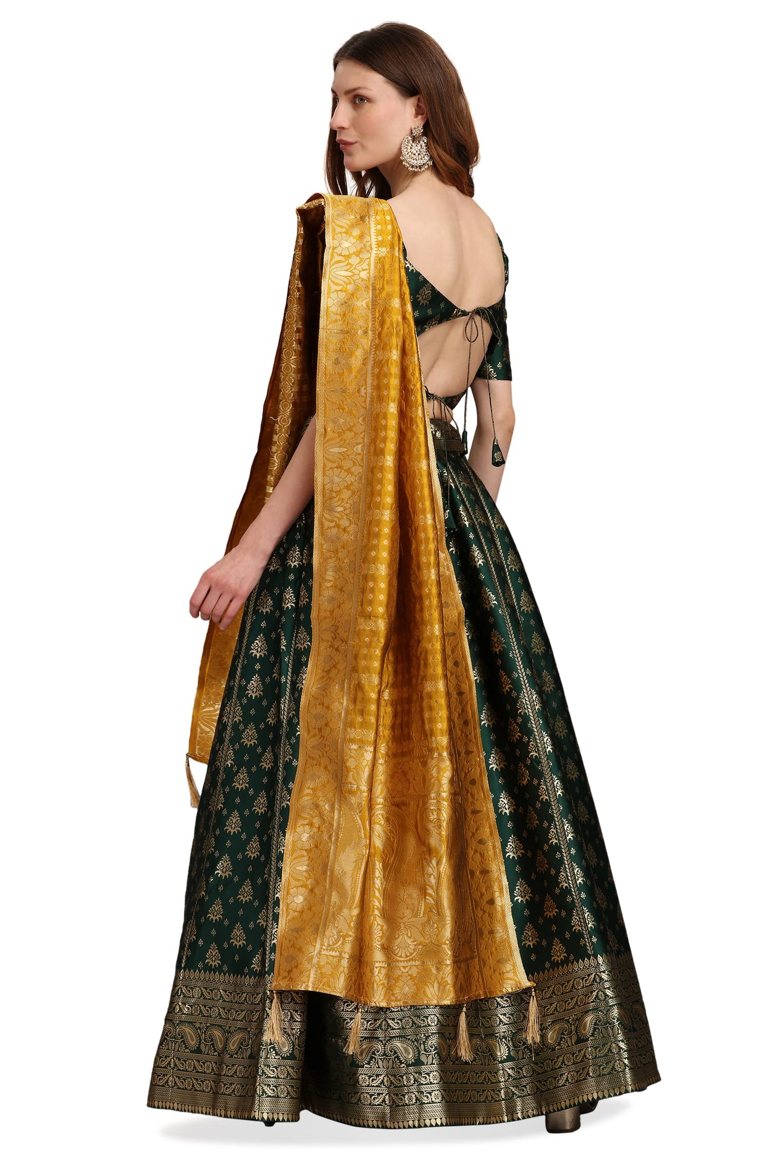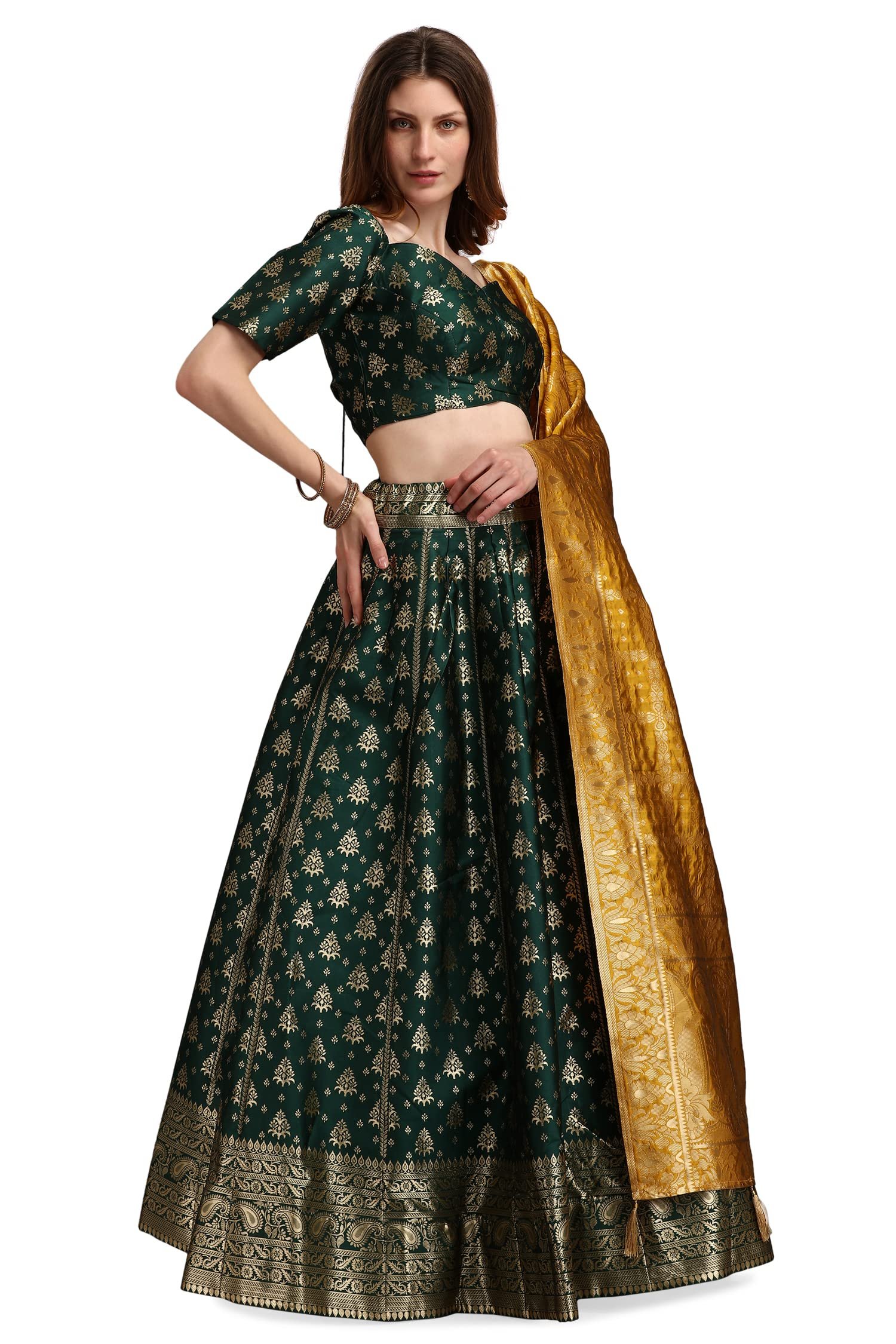 PURVAJA Women’s Jacquard Semi-Stitched Lehenga choli (Trisha-D-Green_Green_Free Size)