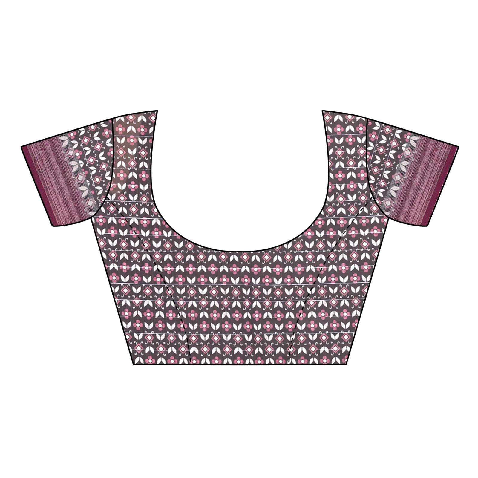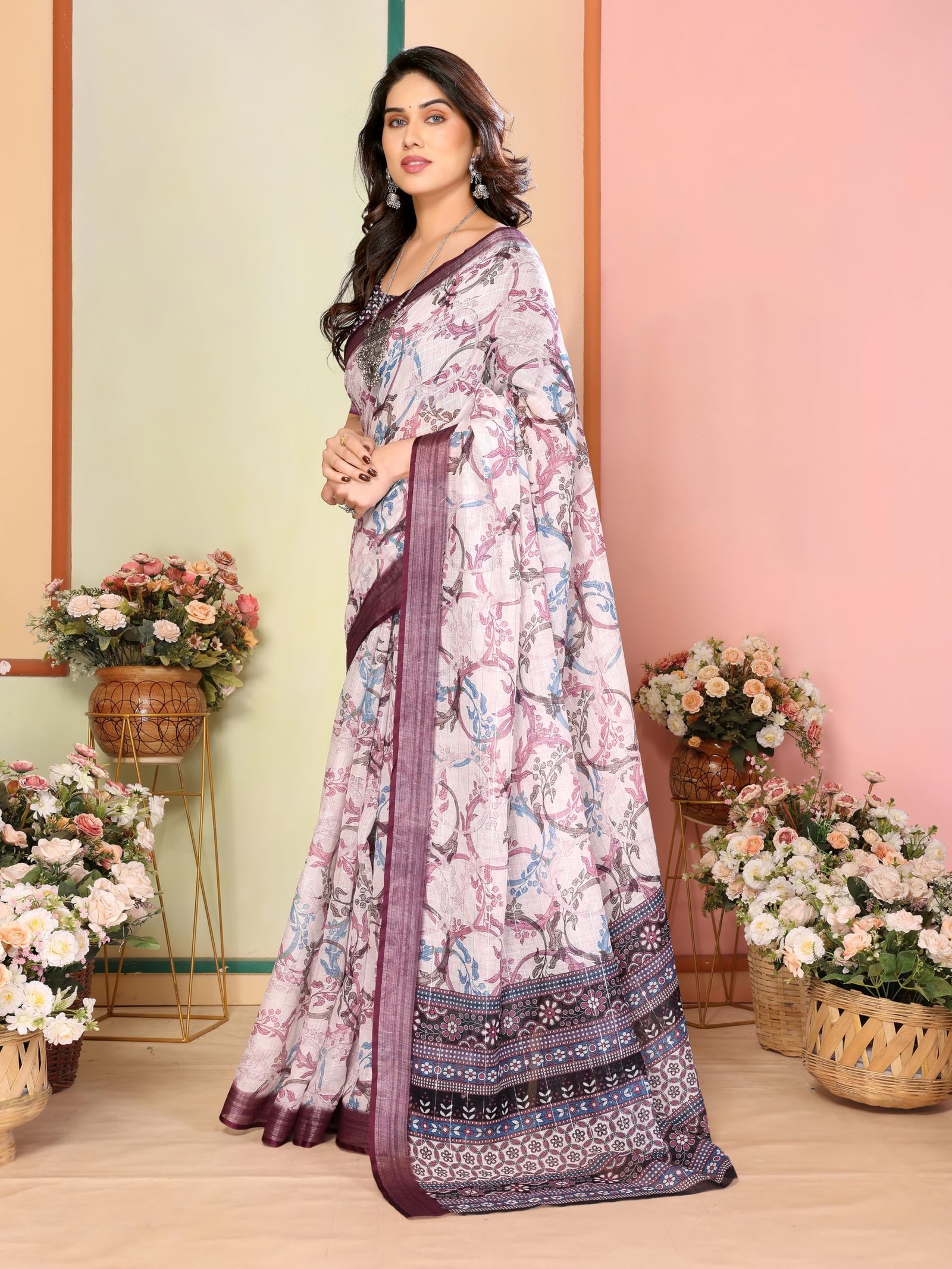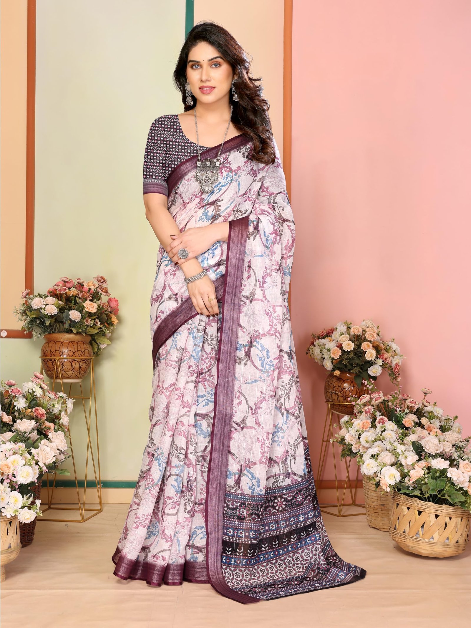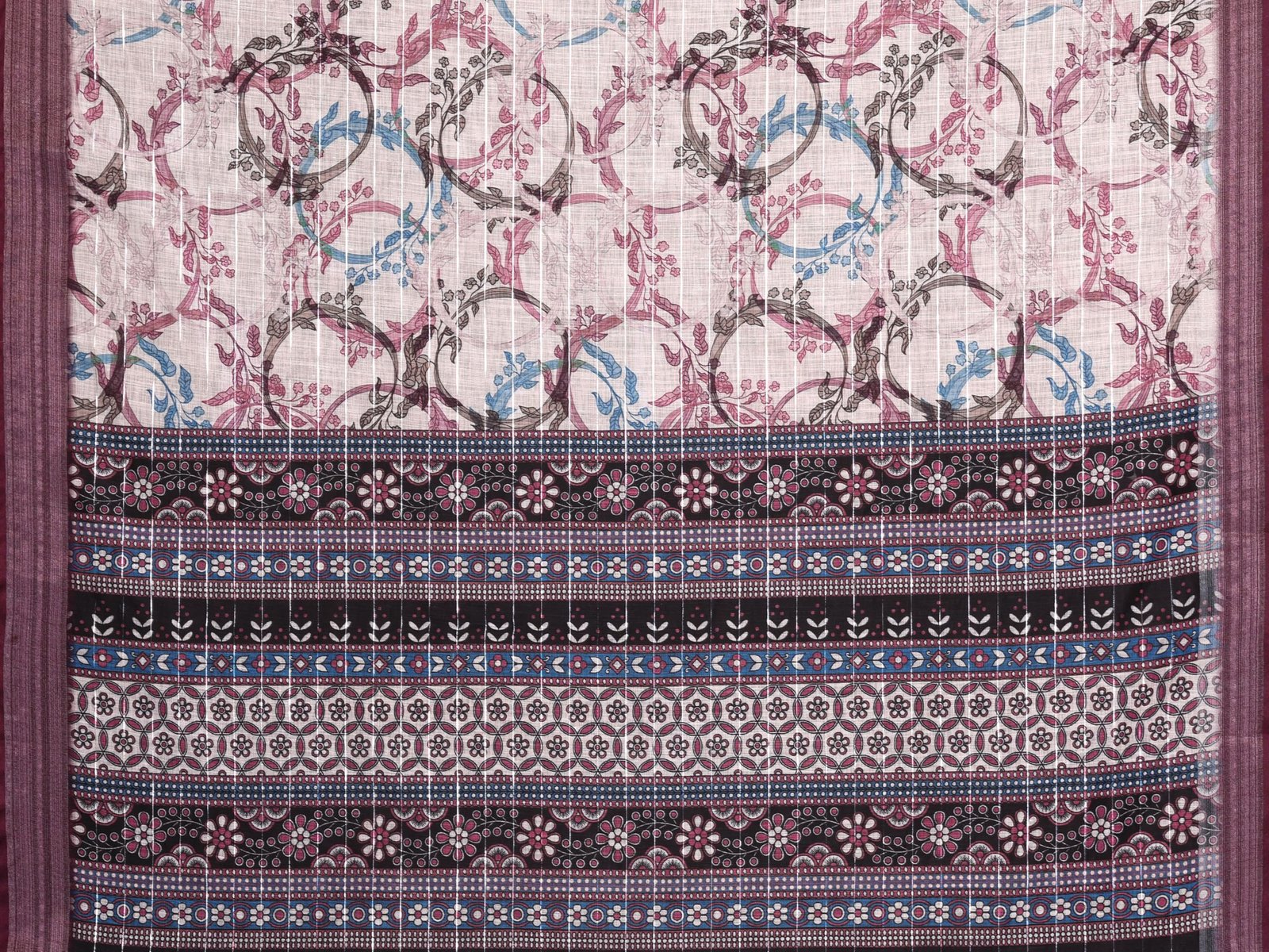 Sidhidata Women's Cotton Linen Blend Lining Digital Printed Saree With Unstitched Blouse Piece (LL Ring Wine_Wine_Free Size)
