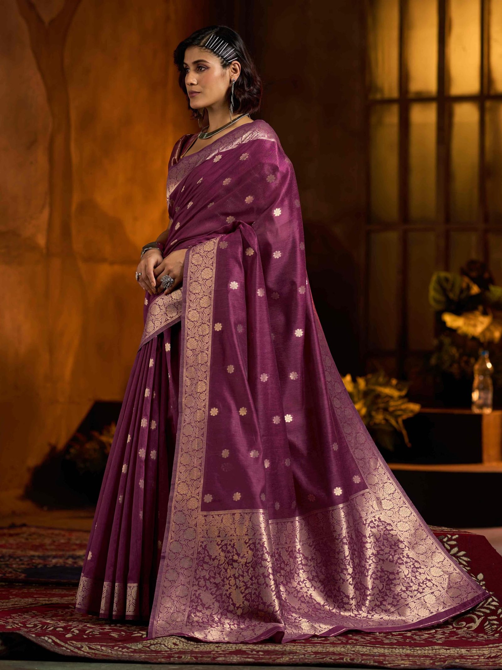 SWORNOF Womens Linen Silk Saree | Saree for Women With Unstitched Blouse | Saree with Blouse Piece | Soft and Skin Friendly (PURPLE)
