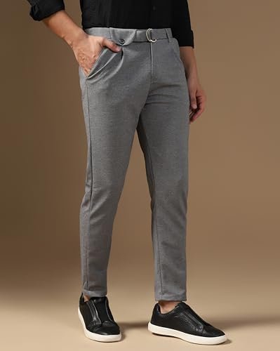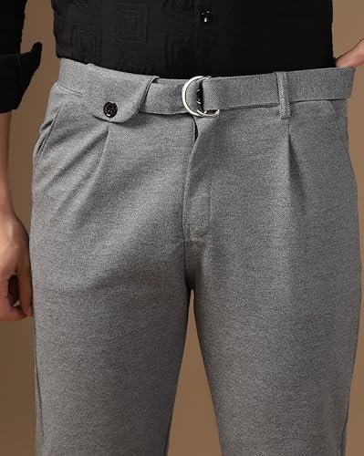 TOPLOT Men's Regular Casual Pants (Belt-Trouser-5173-Silver-38) Light Grey