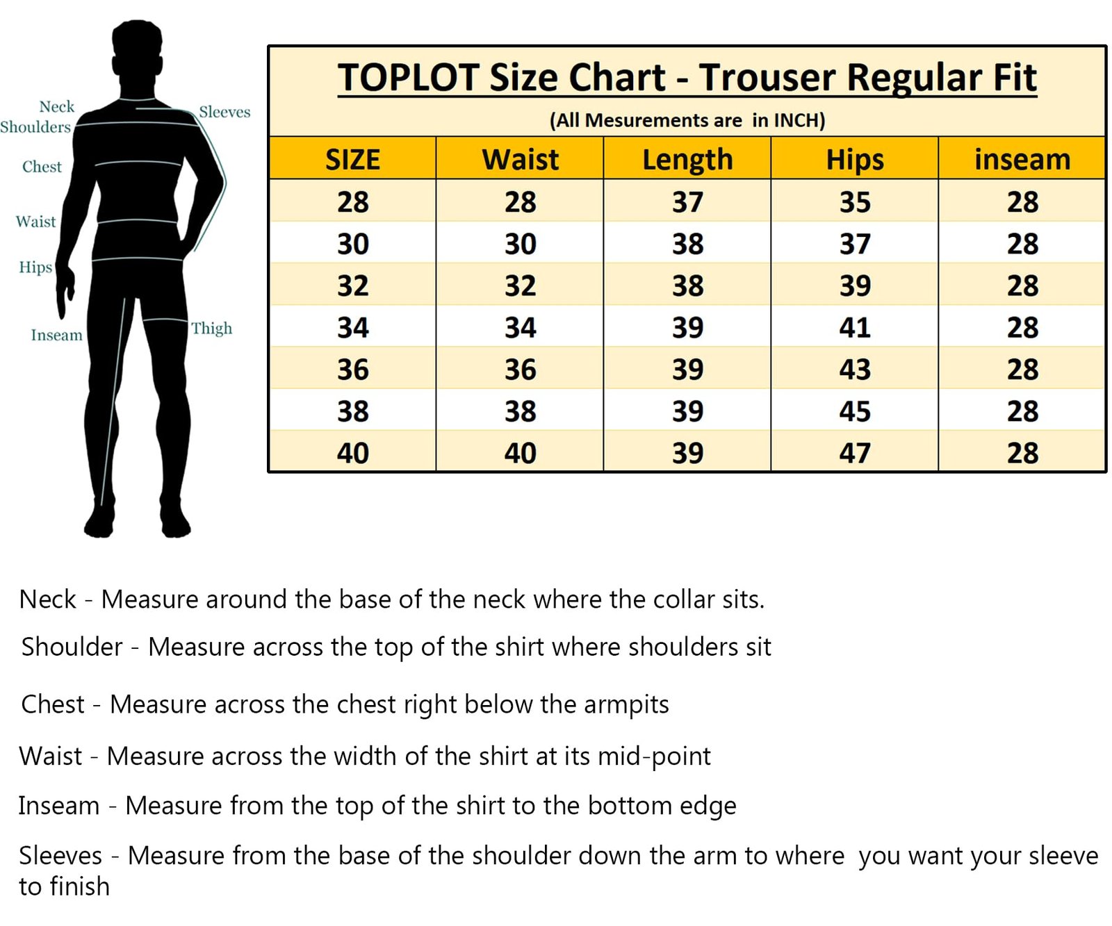 • FABRIC : TOPLOT solid Lycra casual trousers are crafted with Premium Quality of Lycra. The comfort-oriented lightweight fabric is used for making these chinos. The cotton used is versatile, light, durable, and low maintenance.
