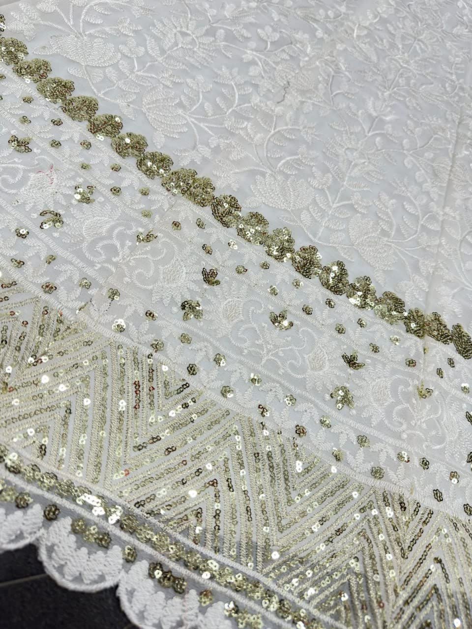 TRENDMALLS Women’s Georgette Embroidery Bridal Lehenga Choli With Dupatta (L66-White, Semi stitched)