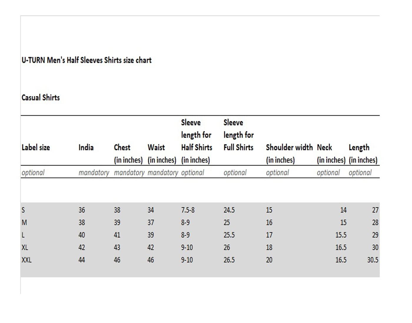 L, M, S, XL, XXL