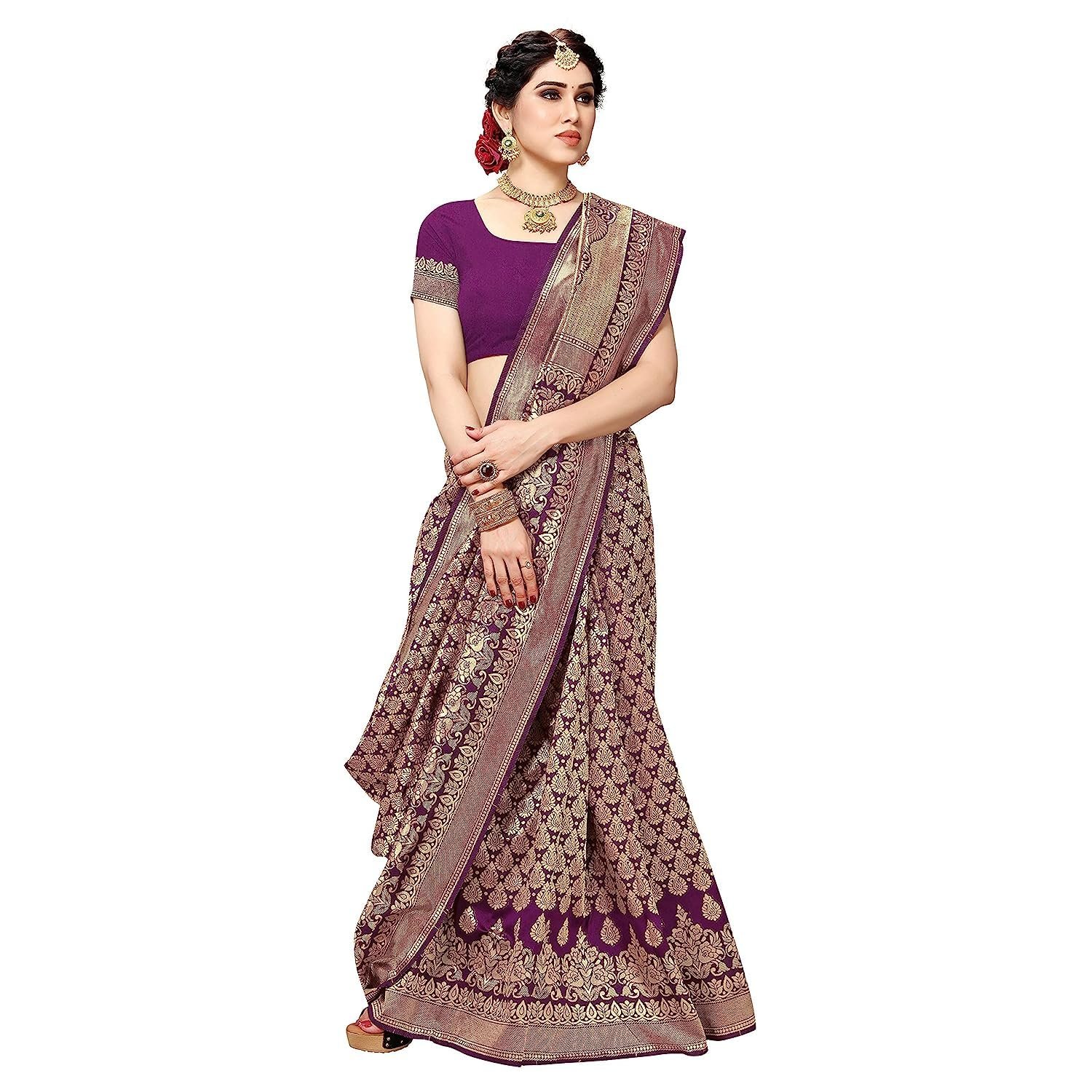 - By YASHIKA Women’s Banarasi Kanjivaram Purple Color Art Silk Saree with Blouse Material on Amazon