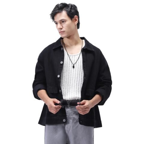 Urbano Fashion Men’s Black Relaxed Fit Full Sleeve Utility Denim Jacket (jakt-denimutfl-black-xl)