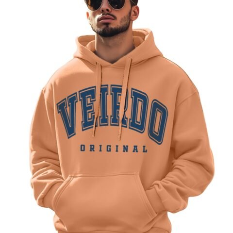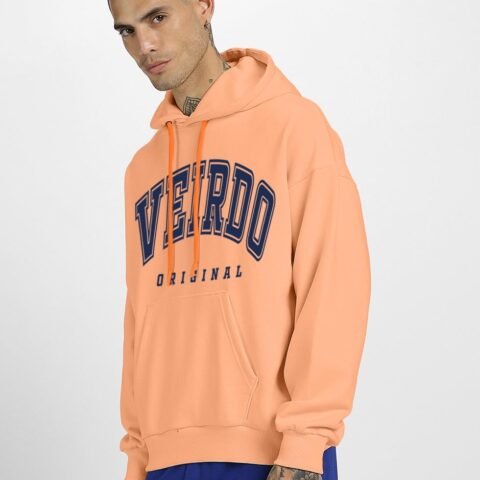 Veirdo® Fleece Oversized Baggy Fit Hooded Sweatshirt Drop Shoulder Typographic Logo Printed Full Sleeve Hoodie for Men ((OS_HDY_V_ORGNAL_CP_L) Copper Tan